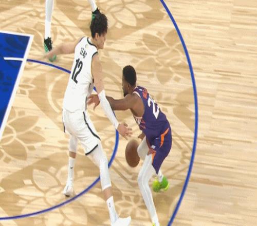 比如一上场就紧逼防守布克,被吹了犯规