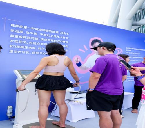为帮助大家更好地了解自身身体状况,赛事现场特别设立健康检测区。工作人员通过专业设备为现场嘉宾检测体重、体脂率、肌肉量等关键指标,并结合检测数据进行健康评估助力公众清晰掌握自身状态,打造个性化减重方案。